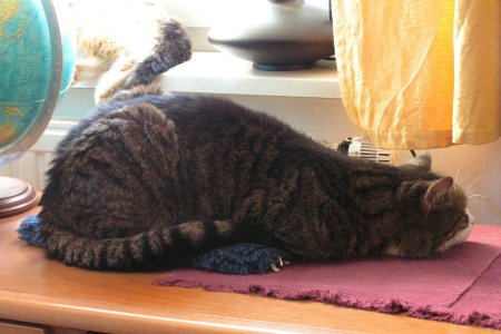 I didn’t have a cat companion for twelve years after my cat friend Babycat was slaughtered by an idiot, who drove by my house in his fancy convertible at much too high speed, but in spring 2002 my wife one day unexpectedly brought home Harry, a castrated tomcat who had a slightly damaged shoulder as a result of being hit by a car and not adequately being treated afterwards.