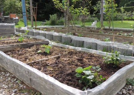 Slugs and snails are not a problem anymore despite the frequent rainfalls because I installed snail barriers around all beds. The barriers are made out of aluminum grid like it is used for fly screens and though they are not completely unsurmountable for the slugs they apparently significantly hinder their migration.