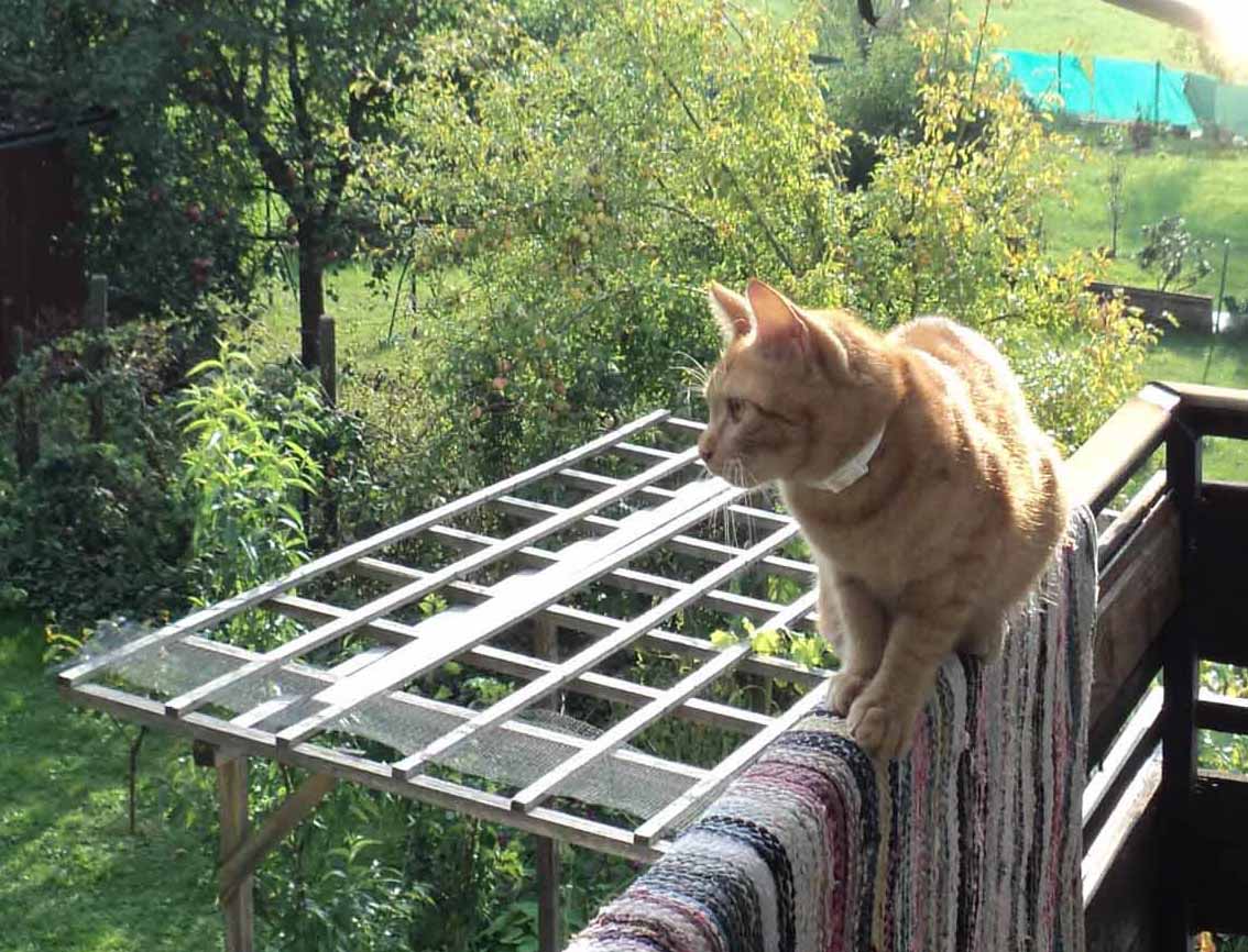 Despite his considerable weight Gandhi Sr. is a terrific tree climber while Ma Xi never managed to climb higher than two meters. I can remember several incidents where Ma Xi chased Gandhi just to be left sitting at a tree and looking up to Gandhi high above in the tree crown. The most puzzling thing in this story is the fact, that Gandhi is not neutered, while Ma Xi is. Normally a fixed tomcat should be calm and an intact one aggressive, but the story of Gandhi and Ma Xi defies this common knowledge. It defies also my lifetime experience with other tomcats (and the wisdom of the ages in general).