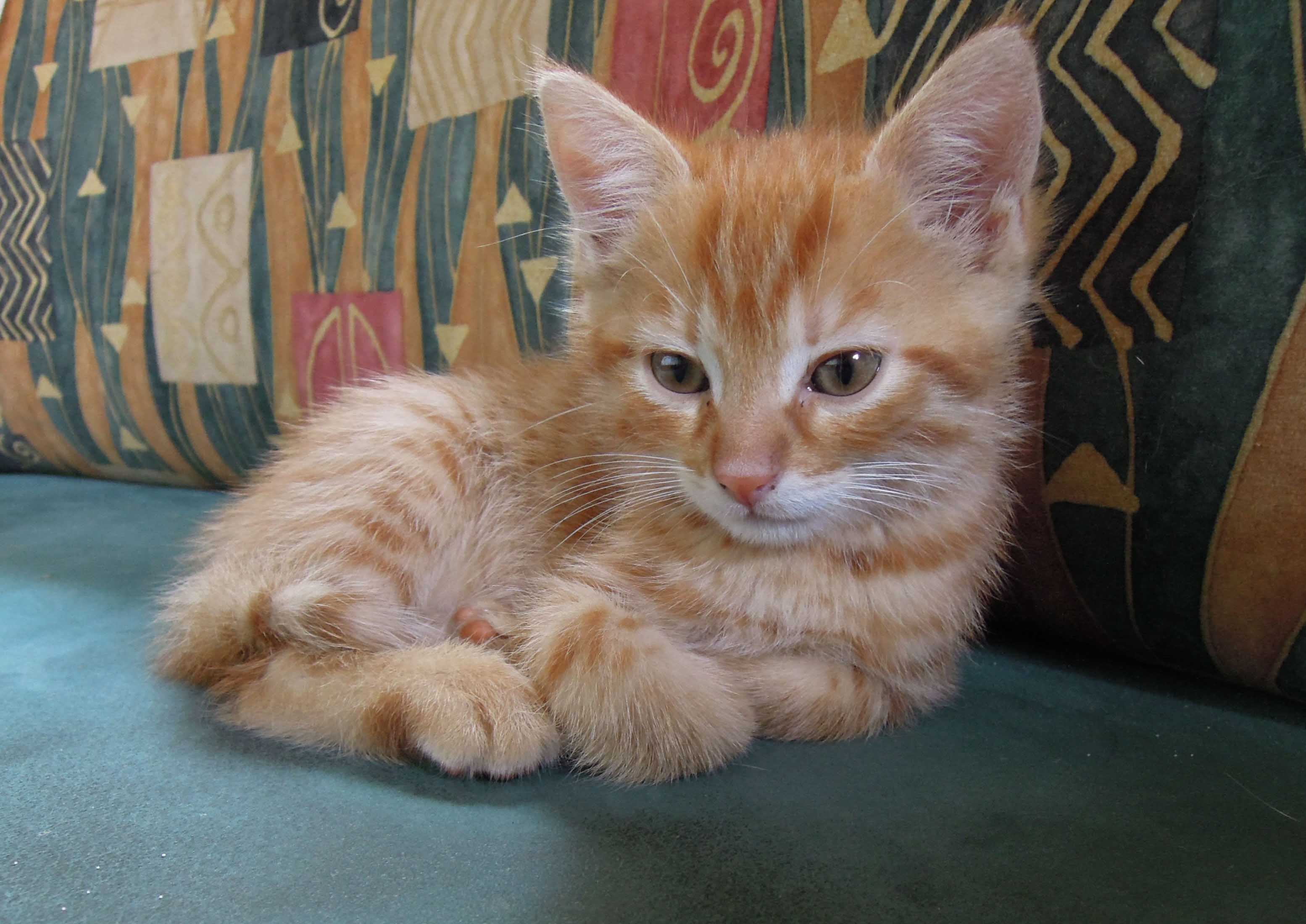 I always thought, that the father of her kittens must have been a big ginger cat and my ex-sister-in-law recently confirmed this assumption. Mia would love to have both Gandhis around and it is sad that the two are not friends. If Junior would realize that he looks exactly like Senior he would (may)be less hostile, but cats are not self aware (they also don’t recognize themselves in a mirror). Gandhi Jr. occasionally jumps onto my lap while I sit on the computer and I then play movies for him that I recorded when the kittens grew up. When Gandhi sees his siblings he stands up and gets completely excited. Yet the movies where he is the lone actor don’t bother him at all, he just doesn’t realize, that this is about him.