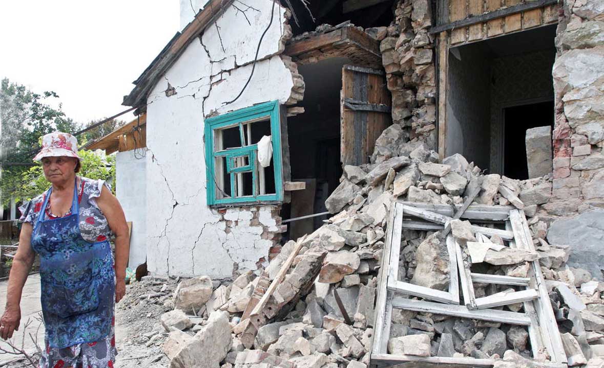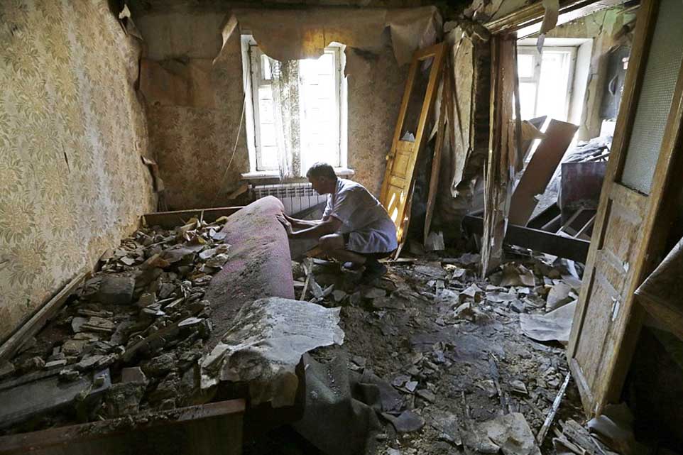 The next day the town was bombed. The first mortar attack hit the area of the “Precision Machinery” factory and a residential neighborhood adjacent to it. The factory was already abandoned by this time. A shell landed at one of the shops, a fire started, and smoke was visible from any part of Donetsk. In the residential neighborhood, by a miracle, the only damages were flattened fences, torn power lines and exploded gas pipes. When our crew arrived at the scene, we found the people in a state of panic and confusion. Residents left without electricity spilled into the street, cursing the war, “the junta” and Poroshenko. They began to collect things. Somewhere in the distance the incessant volleys of artillery could be heard. It was not clear exactly what the targets of the Ukrainian artillery were. But looking at the damage to private houses, it became obvious that the war had come to this city; and that the Ukrainian artillery shoots regardless of whether there is any military object in the targeted location. After all, neither “Precision Machinery” nor the village housed any military installations and the militia was not present.