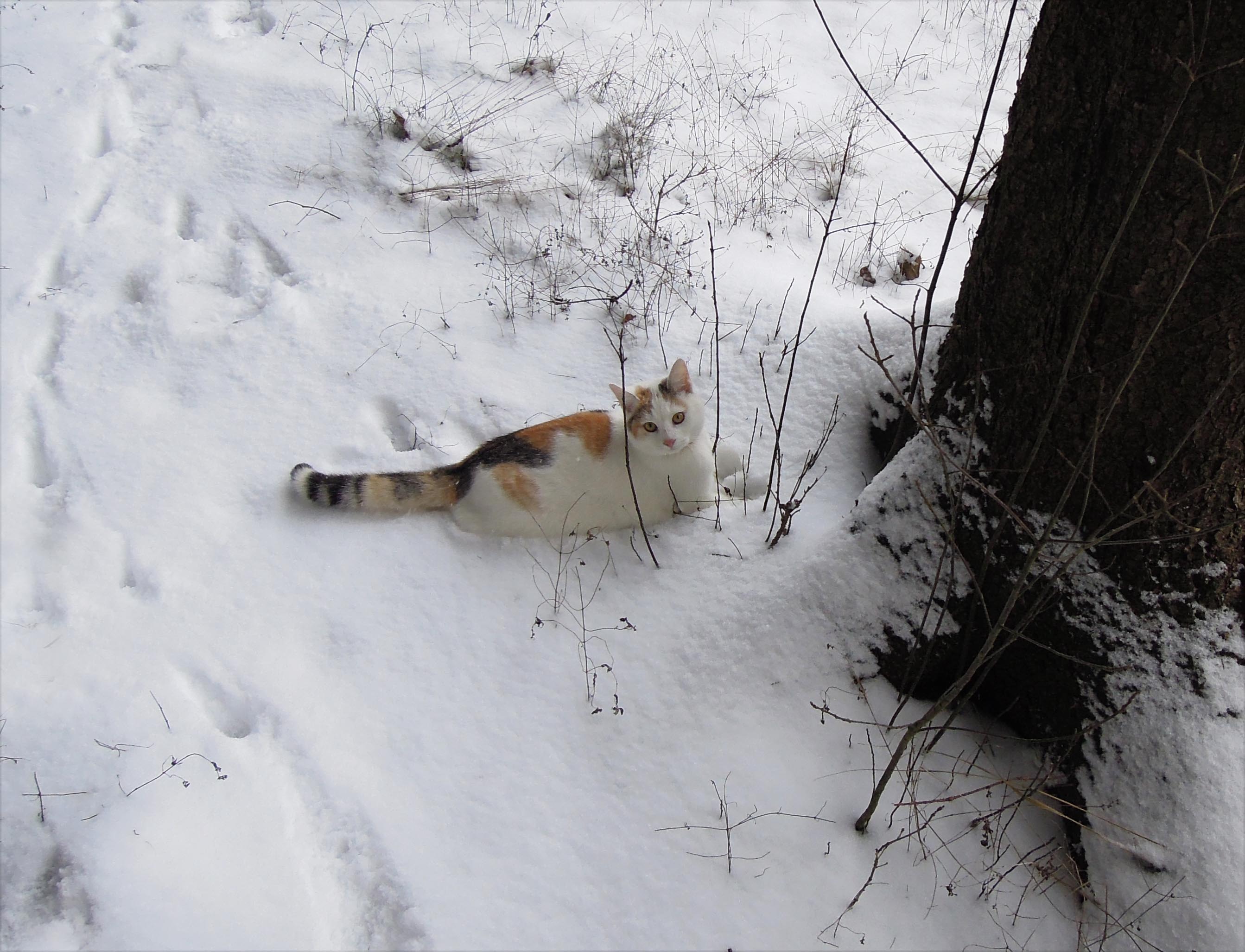 When we came home from the walk, the other cats looked at us with envy. They are all bored sitting at home not knowing what to do the whole day except looking out of the window longingly. There are no mice in the house (fortunately), so what in the world could a cat do? Going out and frolic in the snow would have been a welcome diversion, and yet, they don’t blame themselves for not participating in our forest walk, they rather resent us who took the chance to get a bit fresh air and have some exercise.