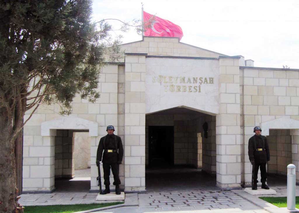 Suleyman Shah was the grandfather of Osman I, who founded the Ottoman empire in 1299. Travelling through modern-day Syria, according to historians, he fell off his horse and drowned in the Euphrates near the site of todays mausoleum, located 37 kilometer from the Turkish border. His tomb is considered by the Turkish government to be Turkish territory.