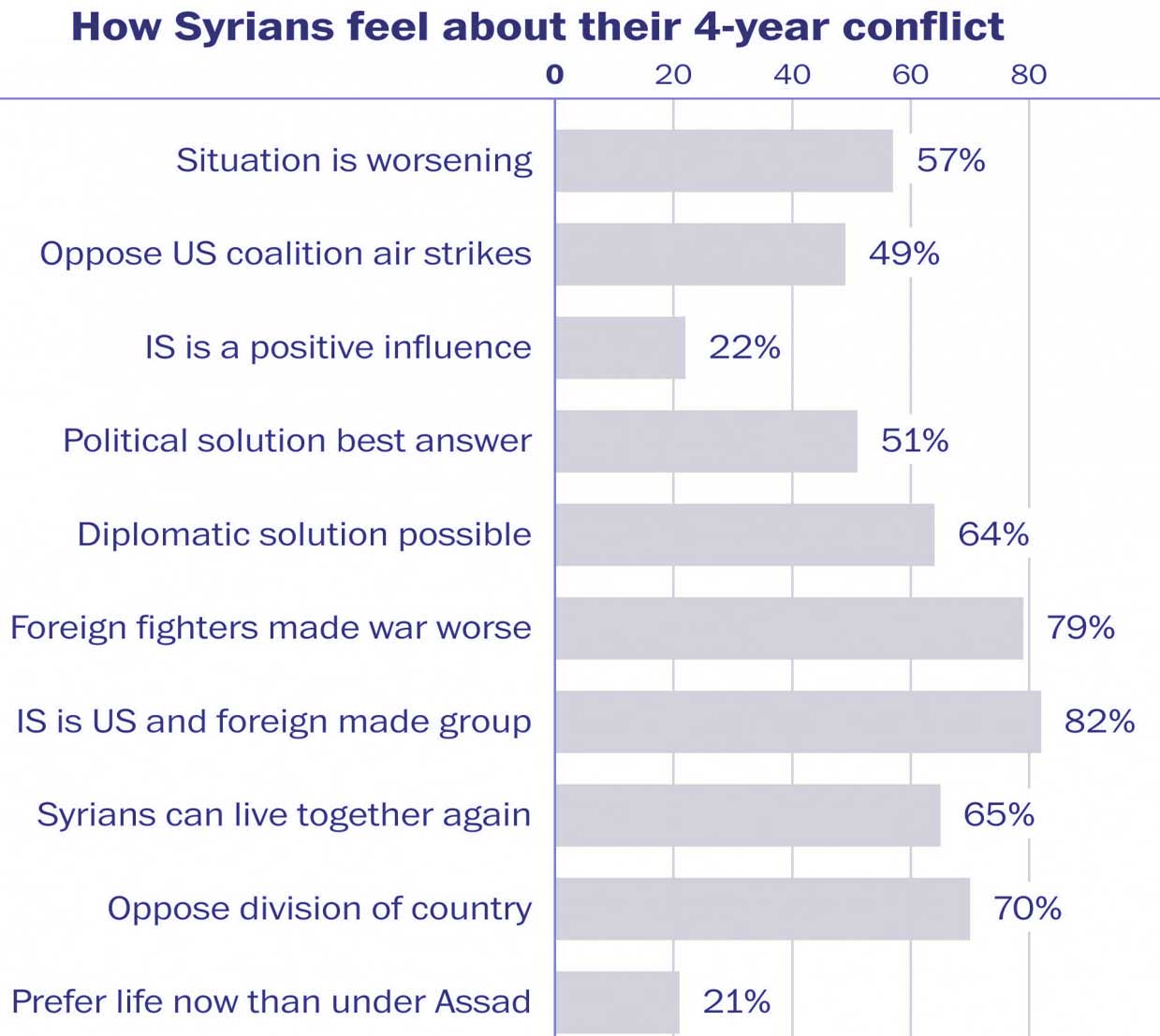 http://www.globalresearch.ca/polls-show-syrians-overwhelmingly-blame-u-s-for-isis/ A remarkable text not only because it shows that the majority of Syrians still support Assad but also demonstrates how poll results can be turned on their head in the establishment press by careful wording. Beside that, Syrians know that IS = US.