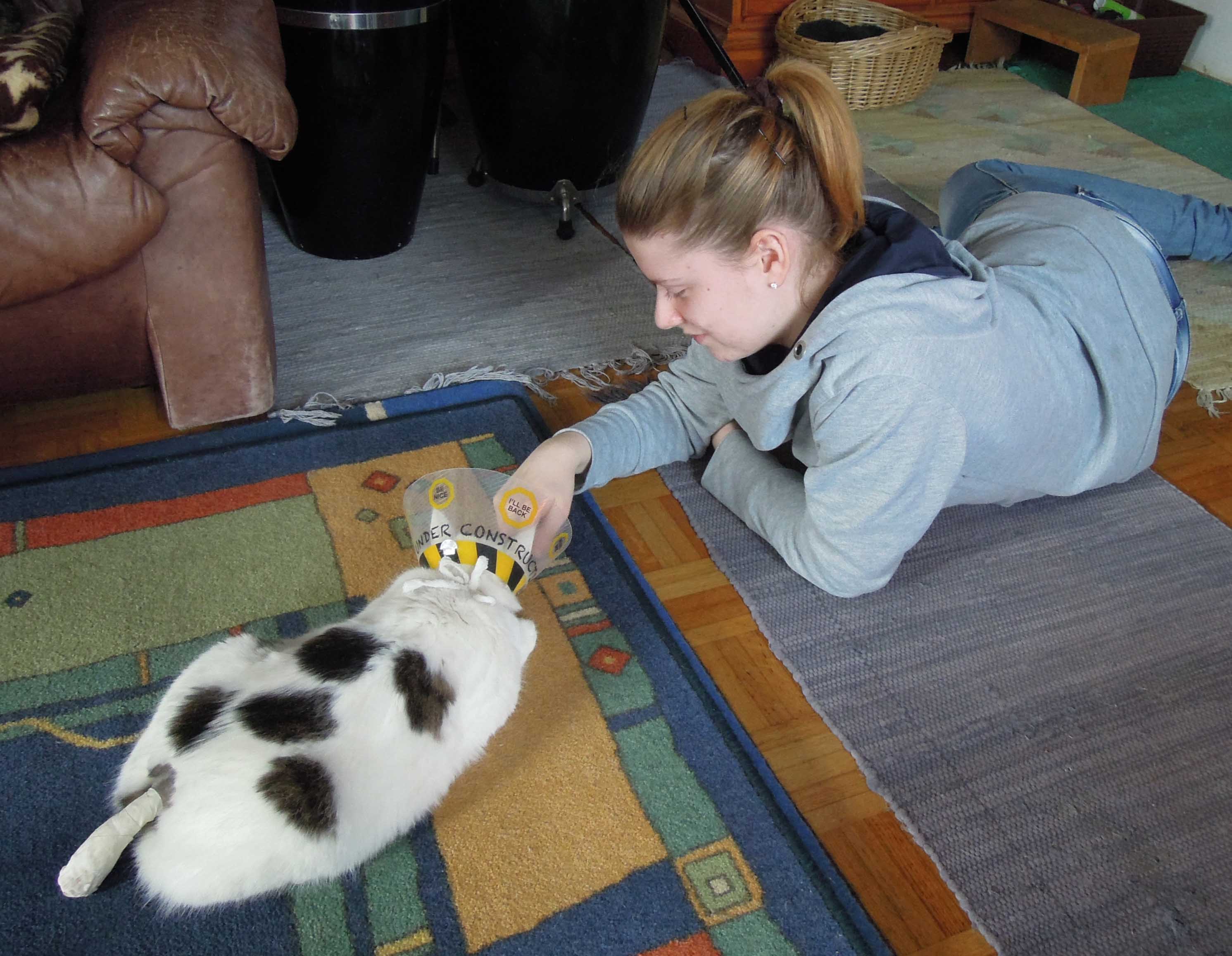 This would have meant the third anesthesia in ten days and as I wanted to avoid this outcome I took Lucia and drove to another vet who agreed to try healing the wound without another surgery. For the next 10 days Lucia has to wear a ruff and we have to visit the new veterinarian every three days to change the dressing and bandage. Lucia also gets half an antibiotic tablet every day and some laxatives.
