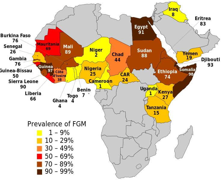 Women in African and Arab countries have a high fertility rate, low literacy, and low life expectancy. These are patriarchal societies where the women are regarded as property of the men. Female genital mutilation is prevalent in Africa and the Middle East.