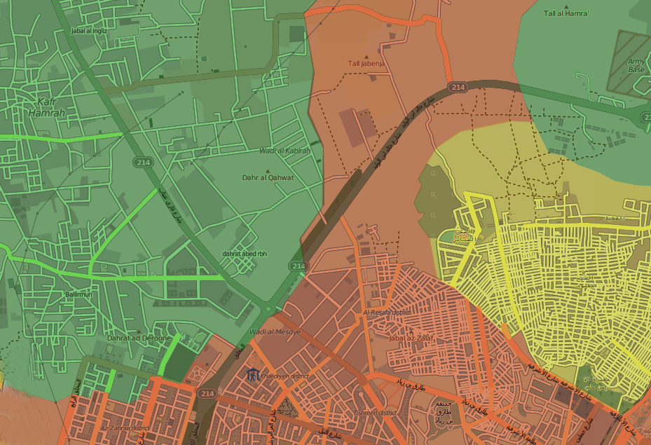At the moment there is heavy fighting, as the Syrian army and the Palestinian Liwa Al Quds Brigade is trying to break into Handarat Camp (a former Palestinian refugee camp). Handarat camp is heavily fortified and a potential death trap for every attacker, because there is a network of tunnels leading to hideouts from where the defenders can mount ambushes and routs.