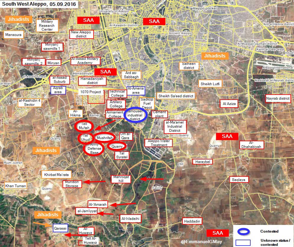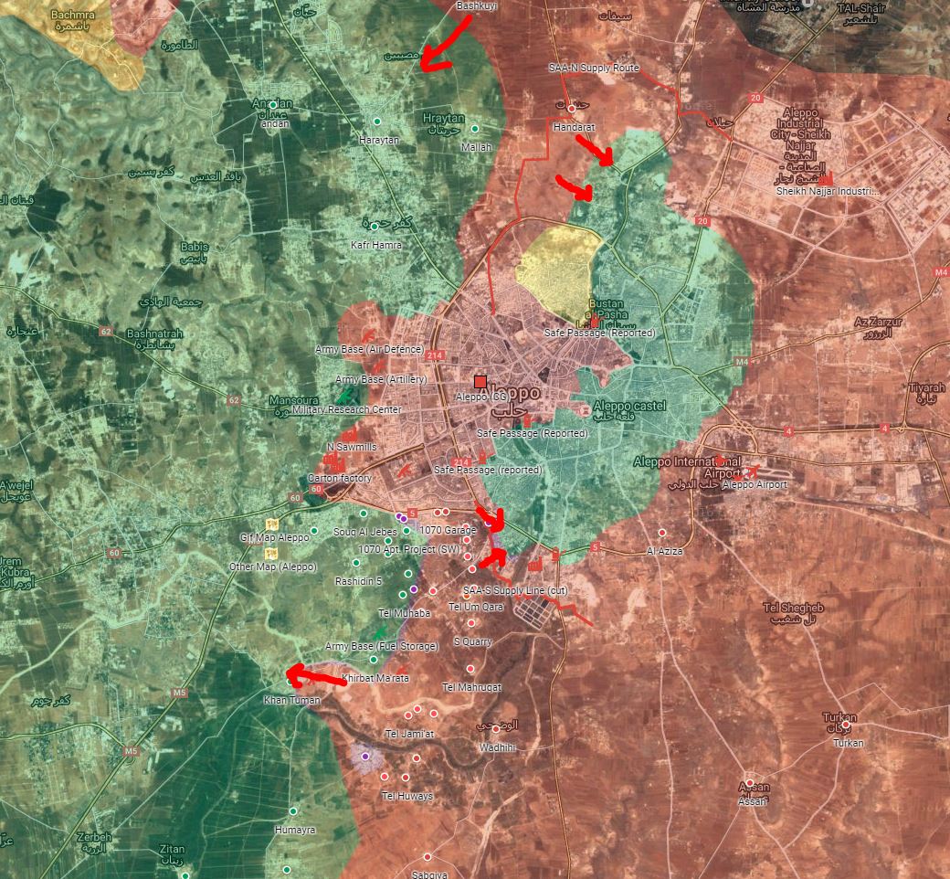 Some of the Islamic fighters were fleeing from the military colleges towards Al Hikma School and Al Shurfa, while others withdrew to eastern Aleppo. As the Islamists defense lines collapsed, the Syrian forces went on the offensive, recapturing most of the territory they lost to the enemy in August and cutting again all supply lines to the Islamists in eastern Aleppo city.