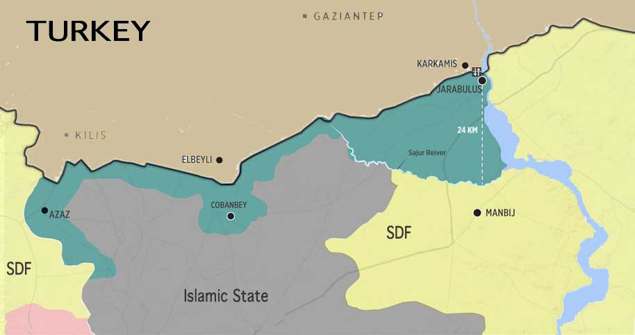There is still the Turkish invasion at the Azaz – Jarabulus border line, officially aimed at dislodging IS from the border. There were no battles, no Turkish air raids, no IEDs or suicide attackers. IS just handed the border area over to their fellow Islamists from the FSA or Turkmen brigades.