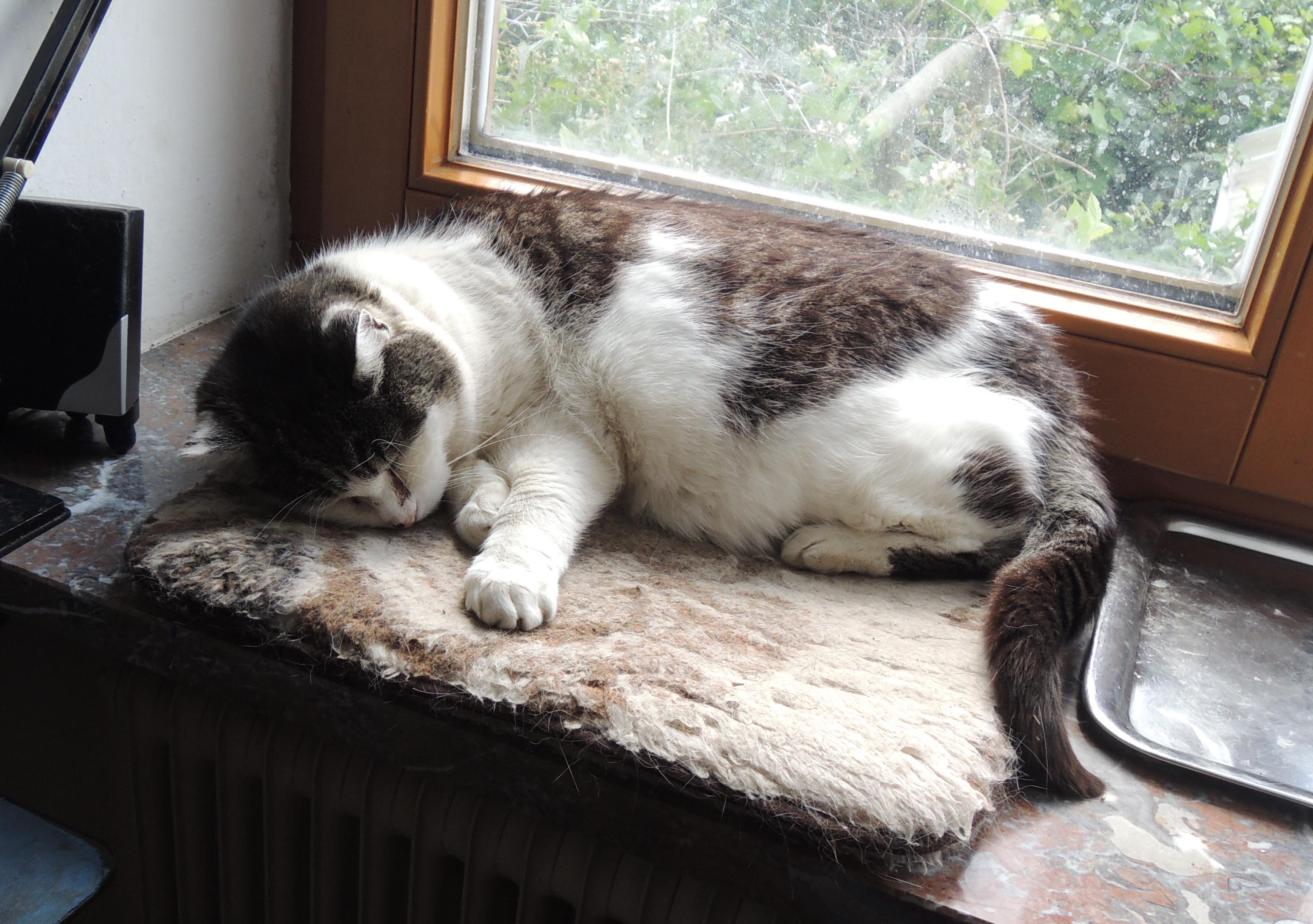 Miss Marple, 19 years old, also suffers from the heat, but she has seen worse times and she is content. Whenever I talk to her and touch her she start purring.