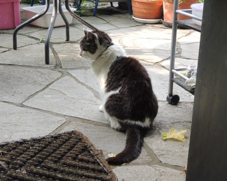 At the moment my cat friends sleep most of the day, because, as I already mentioned at the start, we experience a prolonged heatwave. Unfortunately I cannot sleep as much as I want and need, on the contrary I have to go up at 4 am to turn on the sprinklers in the garden. After that I have a short breakfast and then I start irrigating with watering cans and hoses. The sprinklers do quit a good job but in the remote areas of the garden, on the borders, and in the green houses I have to water manually. I’m usually finished at 8 am, and then I have another three hours where I can do some gardening without being baked by blistering heat.