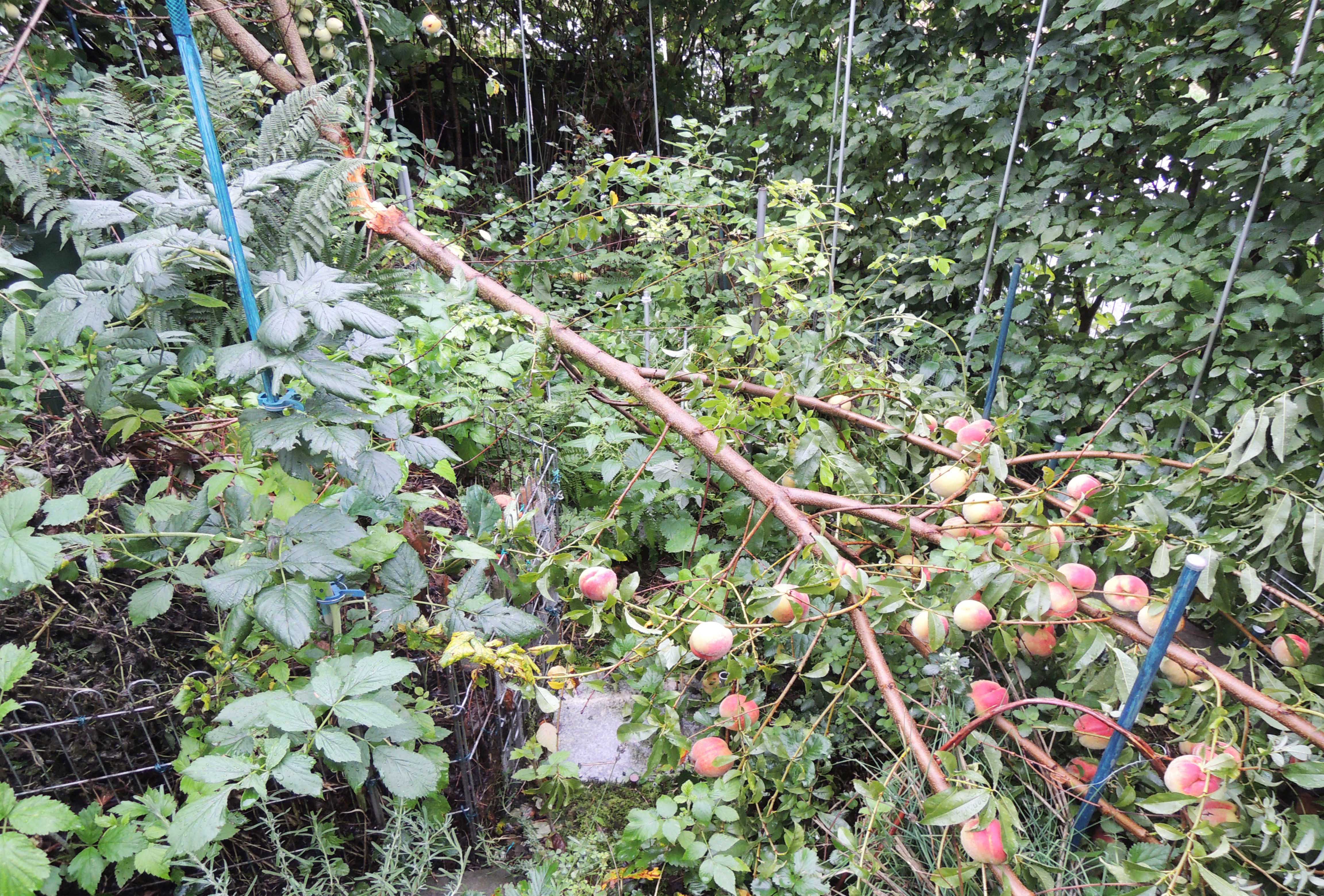 Little grape vines have unexpectedly emerged in some corners of the garden and in three or four years I will find out, if their grapes are also eatable. A wild cherry tree is also growing, but the fruits are just a big stone with only a tiny layer of flesh. Some wild cherries are known to be poisonous (amygdalin > cyanide). I will not cut down this tree, it looks nice, provides shadow, and at the moment doesn’t bother any other plant.