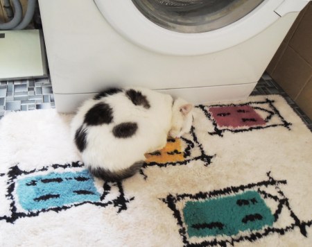 Lucia, the little cat angel, is not a chameleon cat, but she prefers a sleeping place which fits to her fur.
