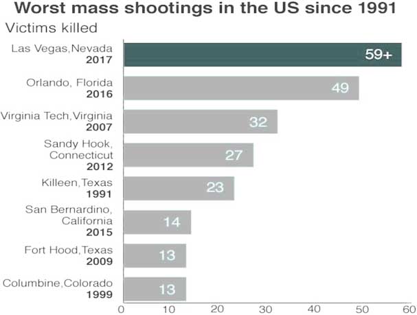 Back to the USA, leader of the free world, shining city on the hill, beacon of democracy, justice, and fairness. 58 killed, 526 wounded in Las Vegas. A new record for mass shoutings and a new record for investors, as stocks of gun manufacturers jumped more than 3 percent. As everybody knows, gun sales increase after every mass shouting.