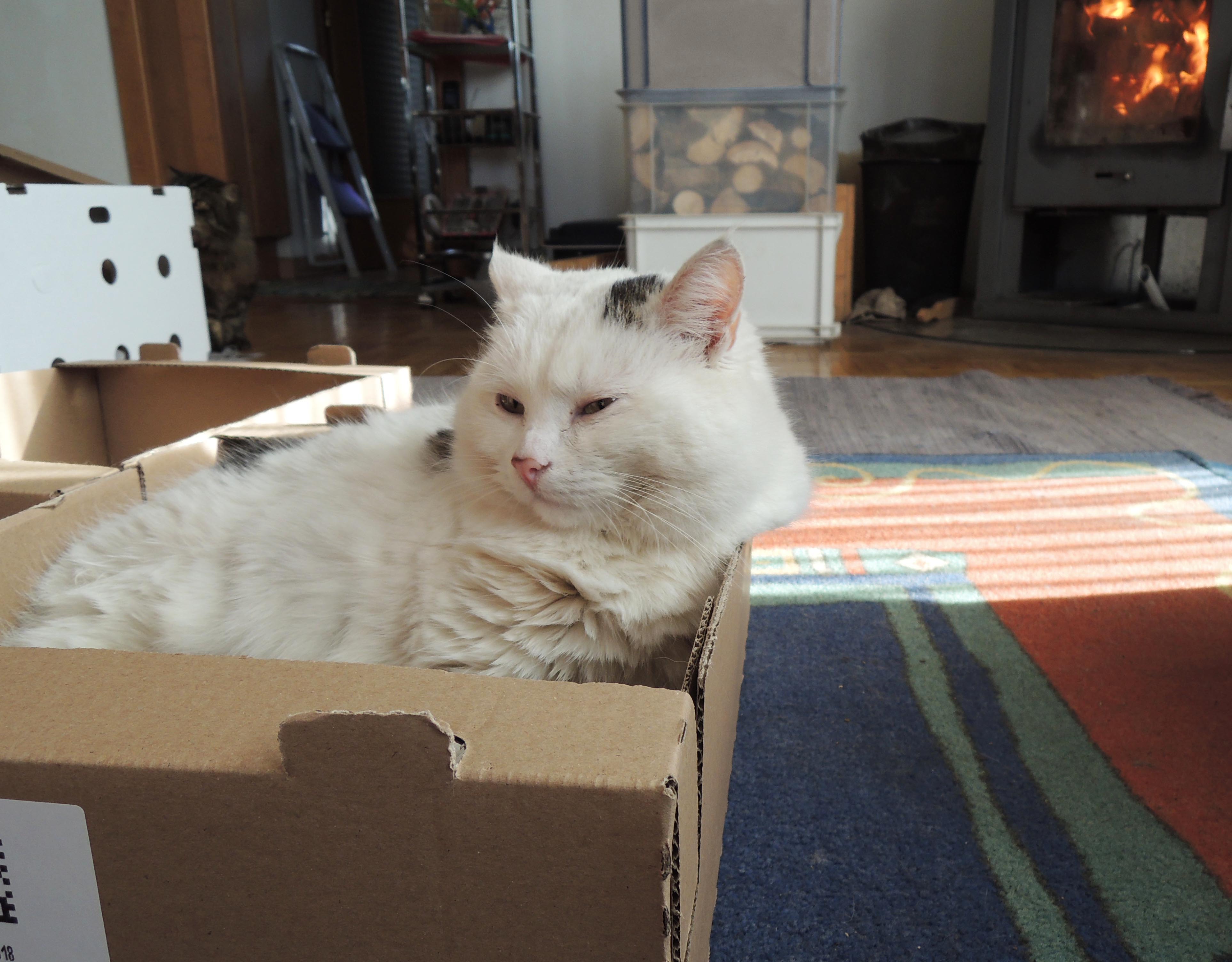 Today it is snowing and everything is covered with a thick blanket of snow. Winter has finally arrived. The cats are resting around the stove or on the windowsill. Aunt Rosy lies beside me and is softly snoring. She still has a chronic cold, it is not severe but never heals completely. As one of the veterinarian’s own cats has an incurable cold since two years, Rosy’s chances to ever get rid of her ailment may be slim.