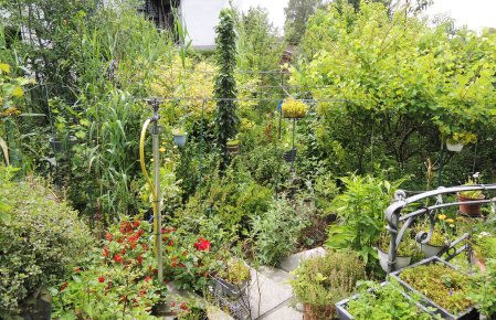 The three oldest grapevines together with aggressively growing blackberries cover a significant part of the garden and shield the bushes and herbs below from the blistering sun. Supported by trellis and a big pergola they constitute arcades through which one can wander while casually plucking fruits, weeding, or planting. I pruned the vines in winter, though not as much as a professional grower would do, and they apparently like it that way and feel fine.