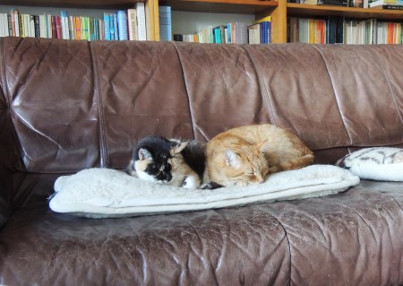The cats are healthy and happy. Summer has ended and the first leaves are falling down, but it is not cold yet. Aunt Rosy and Princess Min Ki have become more quiet, they are 16 and 15 years old and feel their age.