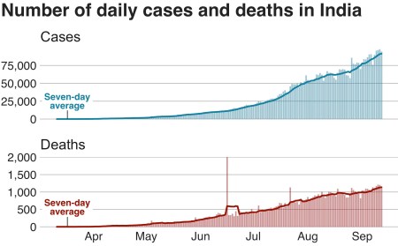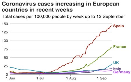 The policy implemented in the USA is being repeated internationally. From the UK to Spain to Brazil, governments are pushing for the reopening of schools even as the pandemic accelerates. In France, new cases have surged far above the earlier peak in May, just as 12 million students are being sent back to school. In India, the government of Narendra Modi is eliminating all remaining restraints on transportation and business operations, even as the country has surpassed Brazil for the second most coronavirus cases, trailing only the USA.