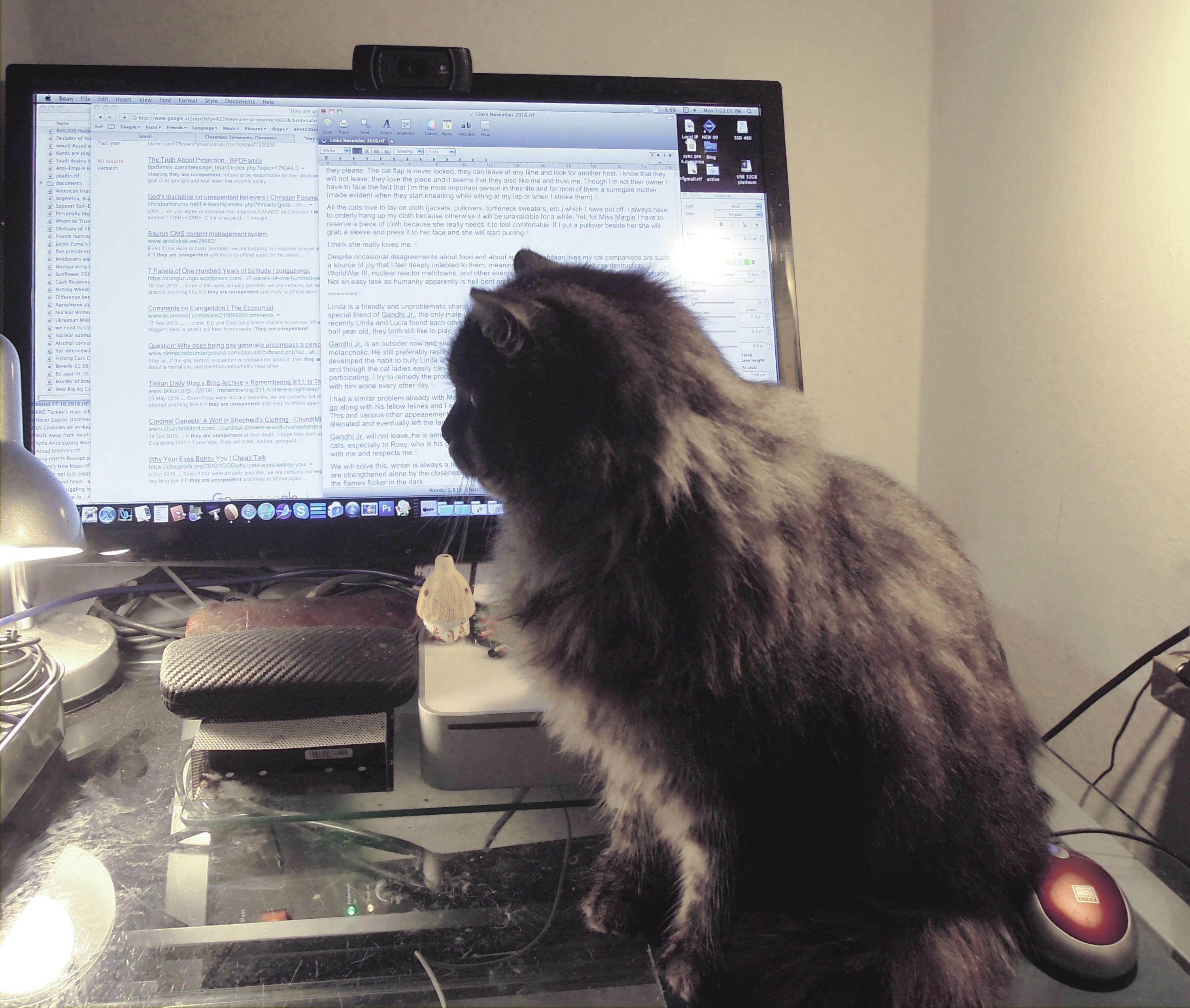 My 12 year old cat girl Wendy has recovered, the anti-worming pill apparently did help. She regularly occupies now Princess Min Ki’s favorite resting place, but the Princess has already found another quiet location. Gandhi Jr. rests mainly in aunt Rosy’s favorite basket. Rosy sadly disappeared in spring and he surely is missing her.