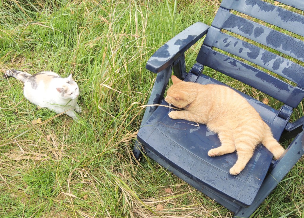 Thank you for your kind words. Btw, if you wonder about the blue garden chair, it is in the middle of the forest in a small clearing on top of a hill that nobody except the cats, some deer, and me knows. I put the chair there because every now and then during our walks we make a rest in this quiet place.