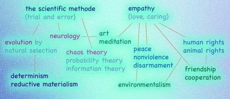 The foundation of all beliefs in the map are two core beliefs, the belief in the scientific method and in empathy.