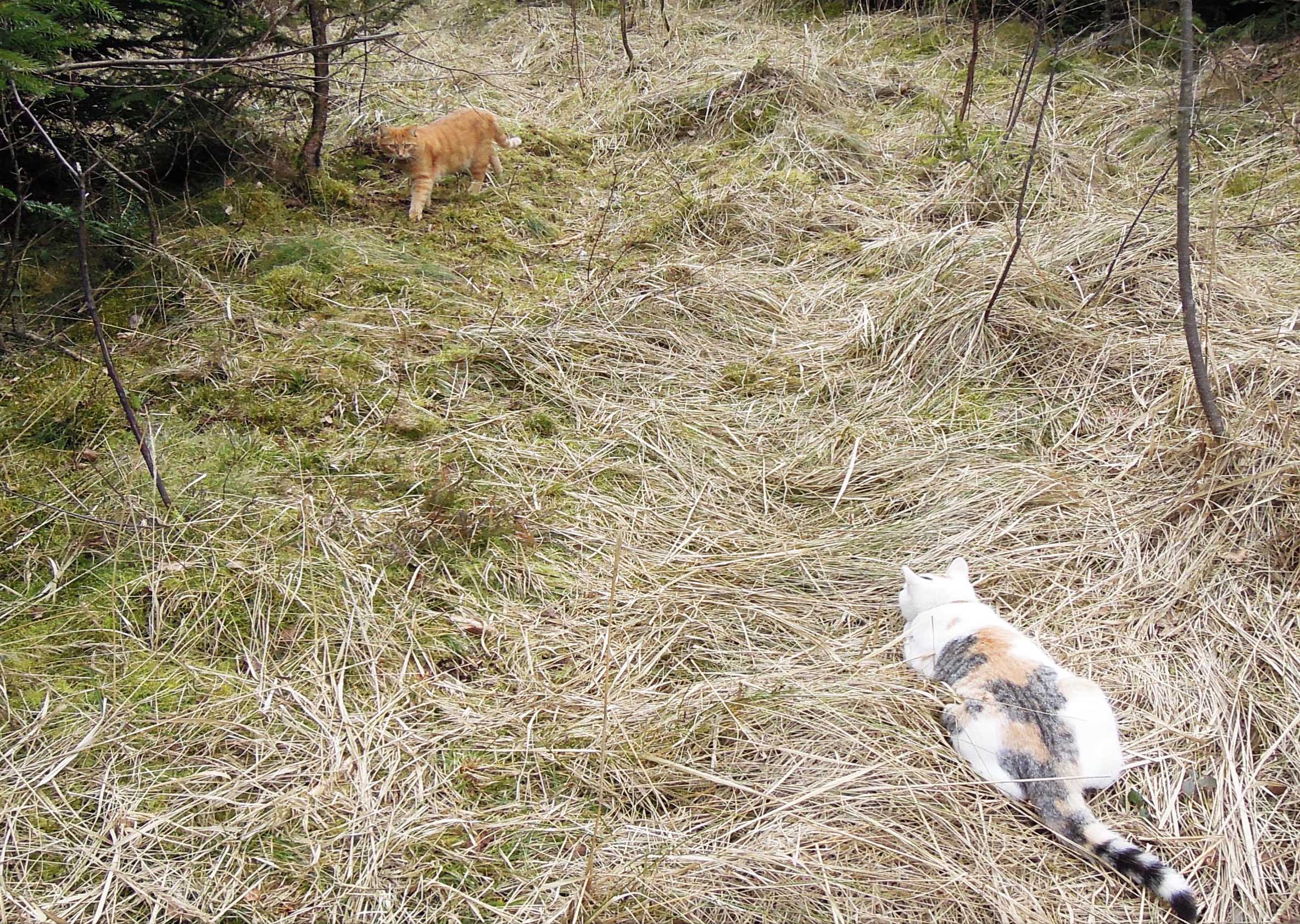 Everything is fine here and the cats are seemingly healthy. They are lovely and adorable, as always, and everyday we make a walk in the forest.
