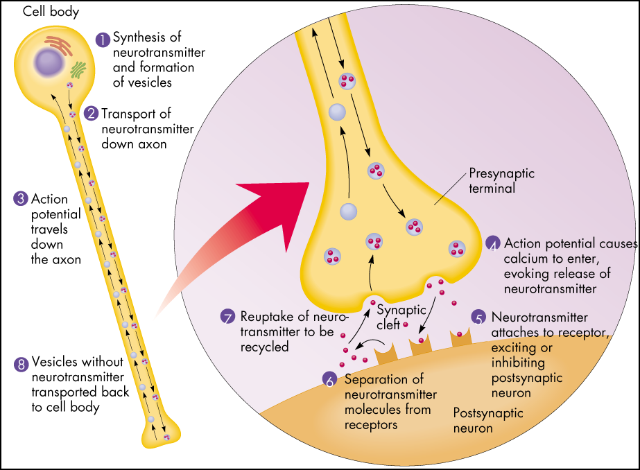 Millions of synaptic connections are involved in a single process and each one of these synapses is a powerful and versatile operator which can function as a switch, an operational amplifier, a unit of boolean algebra, or a frequency filter. The synapses are channeling and transforming the flow of action potentials and they are controlled by dozens of excitatory or inhibitory neurotransmitters. They are also controlled by glial cell (astrocytes), which can control the blood supply (by squeezing the blood vessels of the neurons) and modulate neurotransmitters via an ATP – hydrogen ions feedback loop. Astrocytes also form the myelin isolation of the axons.