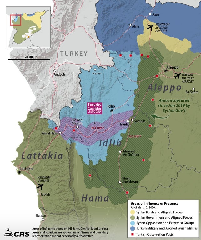 The M4 from Latakia to Saraqip is currently controlled by the Islamists, but Russia and Turkey are said to patrol it from March 15 on and maintain a demilitarized zone 6 kilometer north and 6 kilometer south of the road.